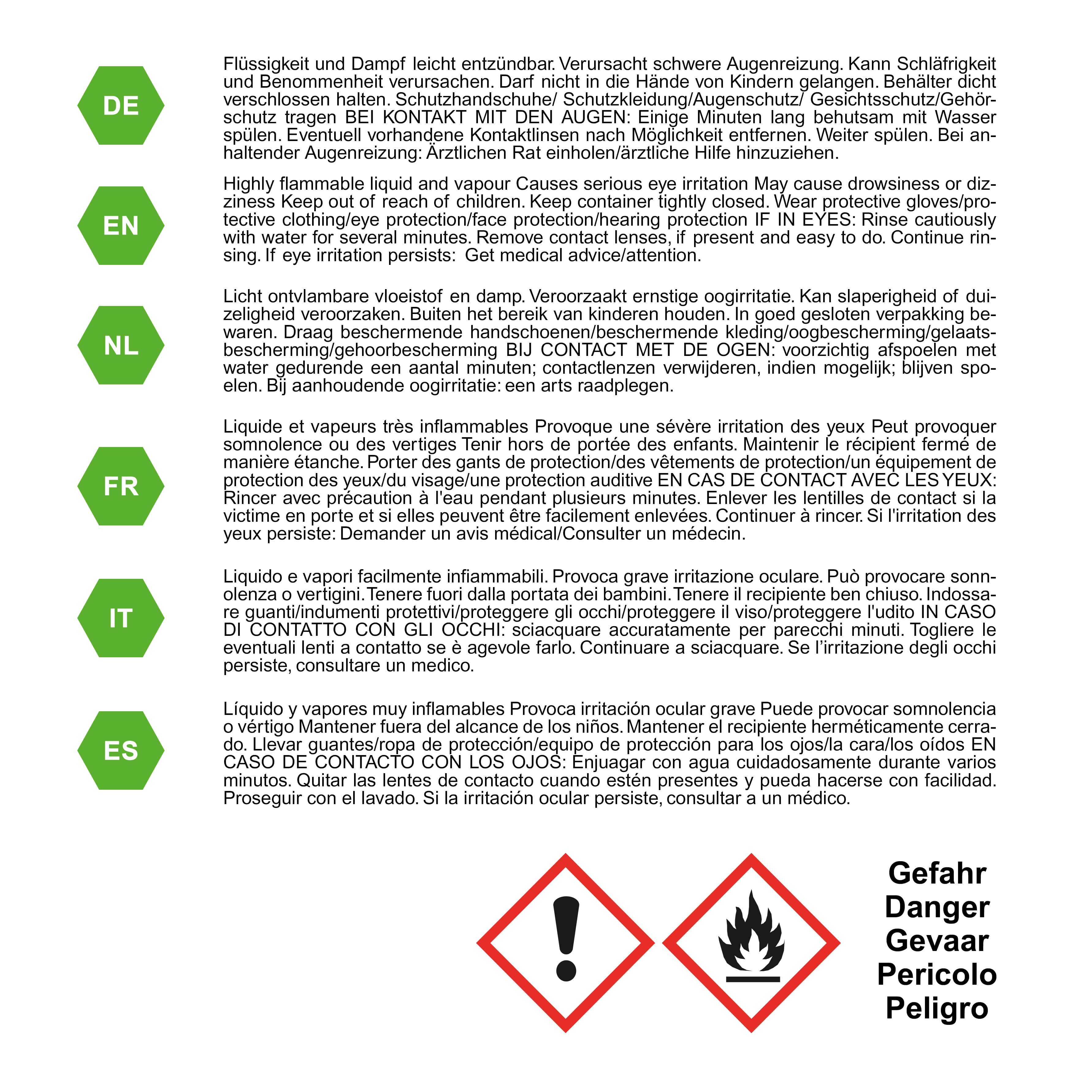 - 70% Alkohol ohne Zusätze von Farb- und Duftstoffen - für sensiblere Oberflächen auch mit Wasser verdünnbar.