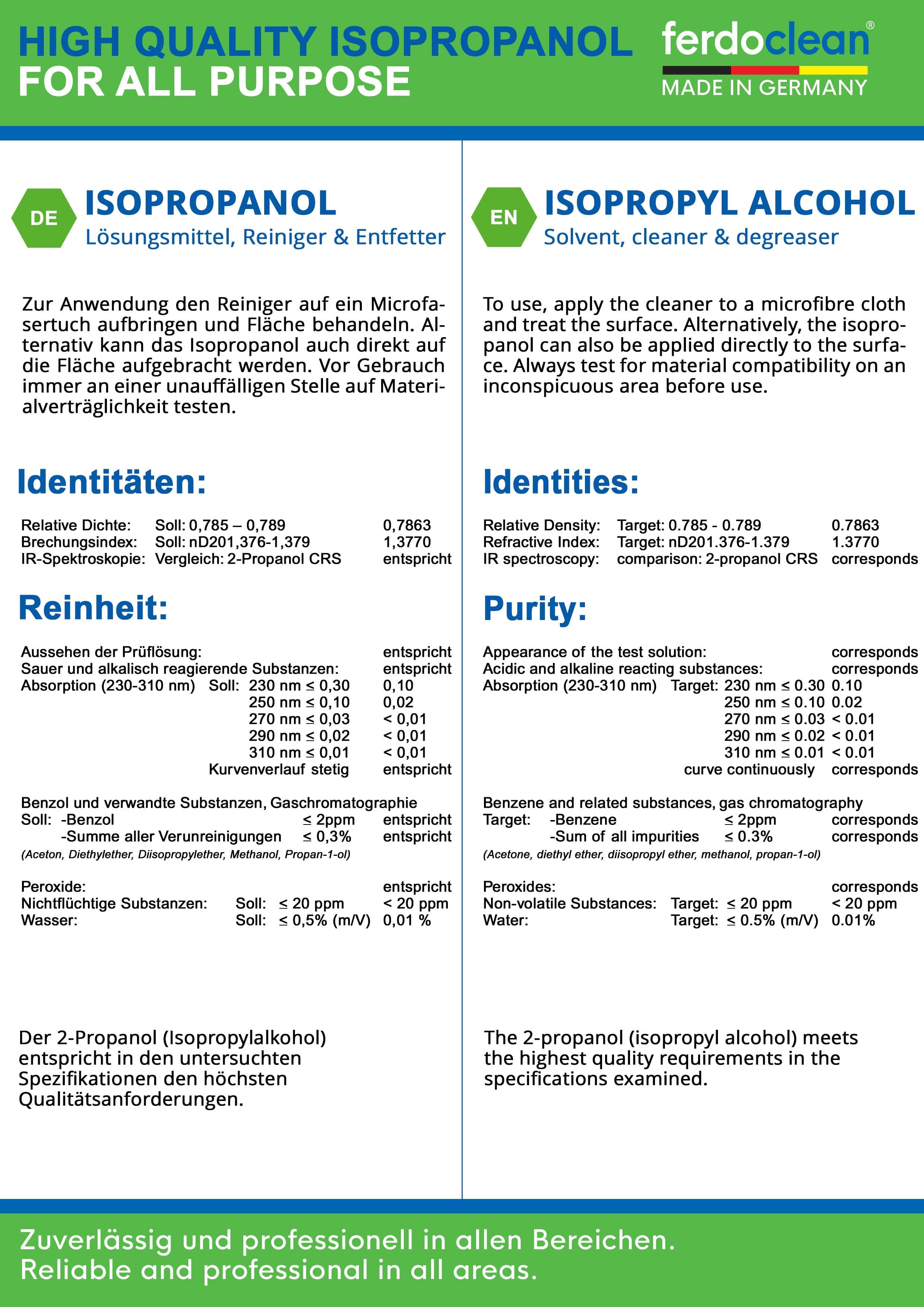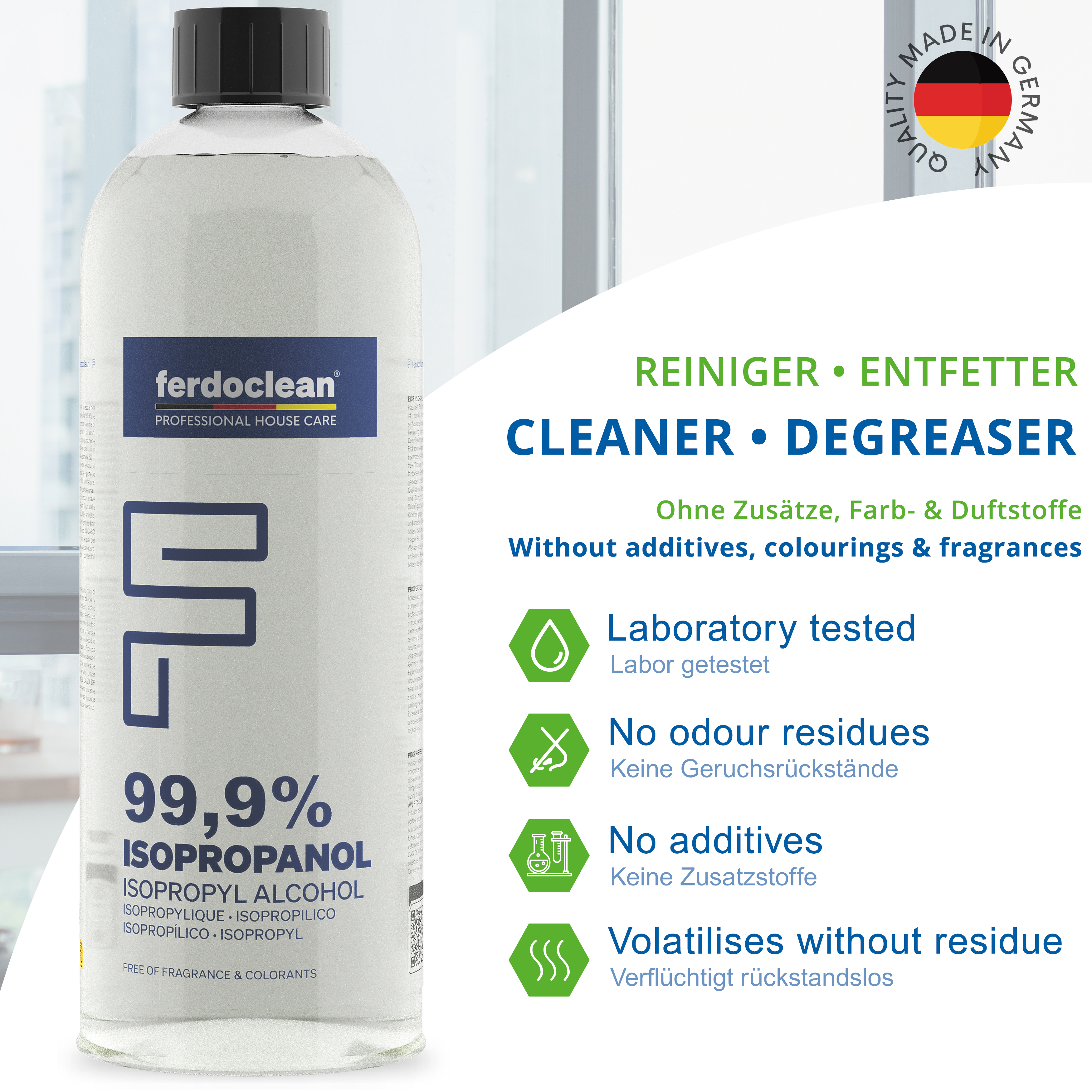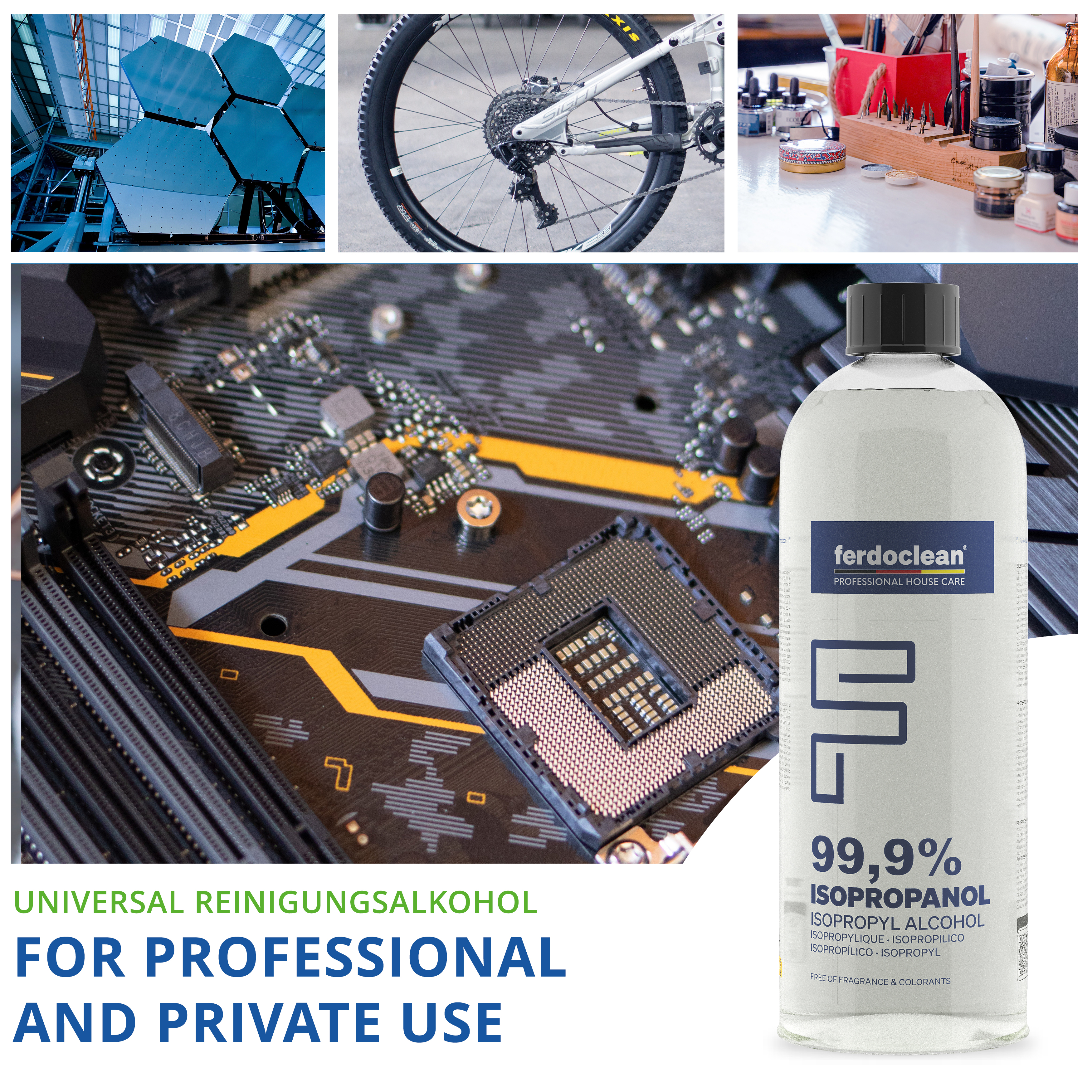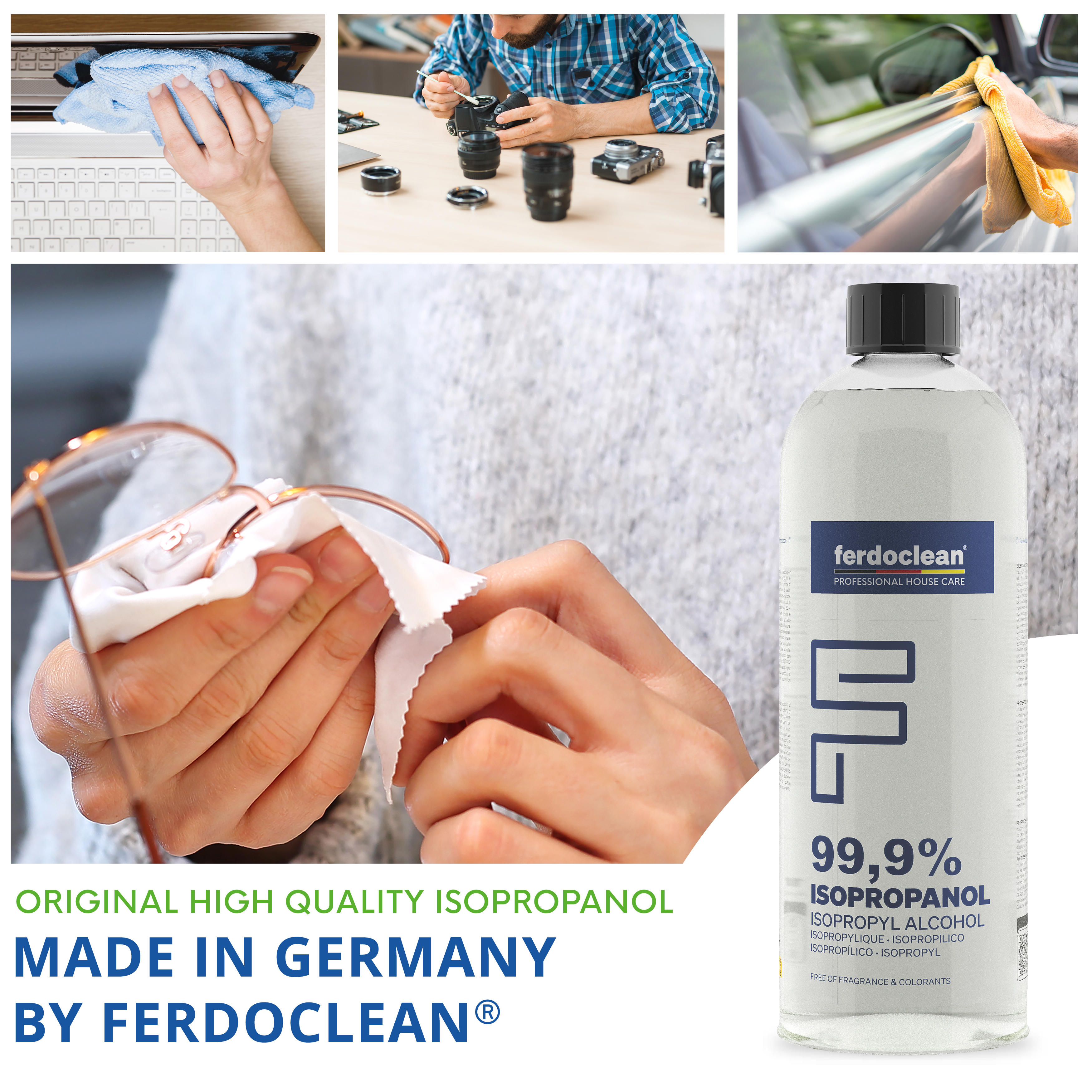 - ferdoclean Isopropanol ist perfekt für die Reinigung zahlreicher Einsatzgebiete in Haushalt & Küche, in der Industrie, in Werkstätten und in der Medizin.
