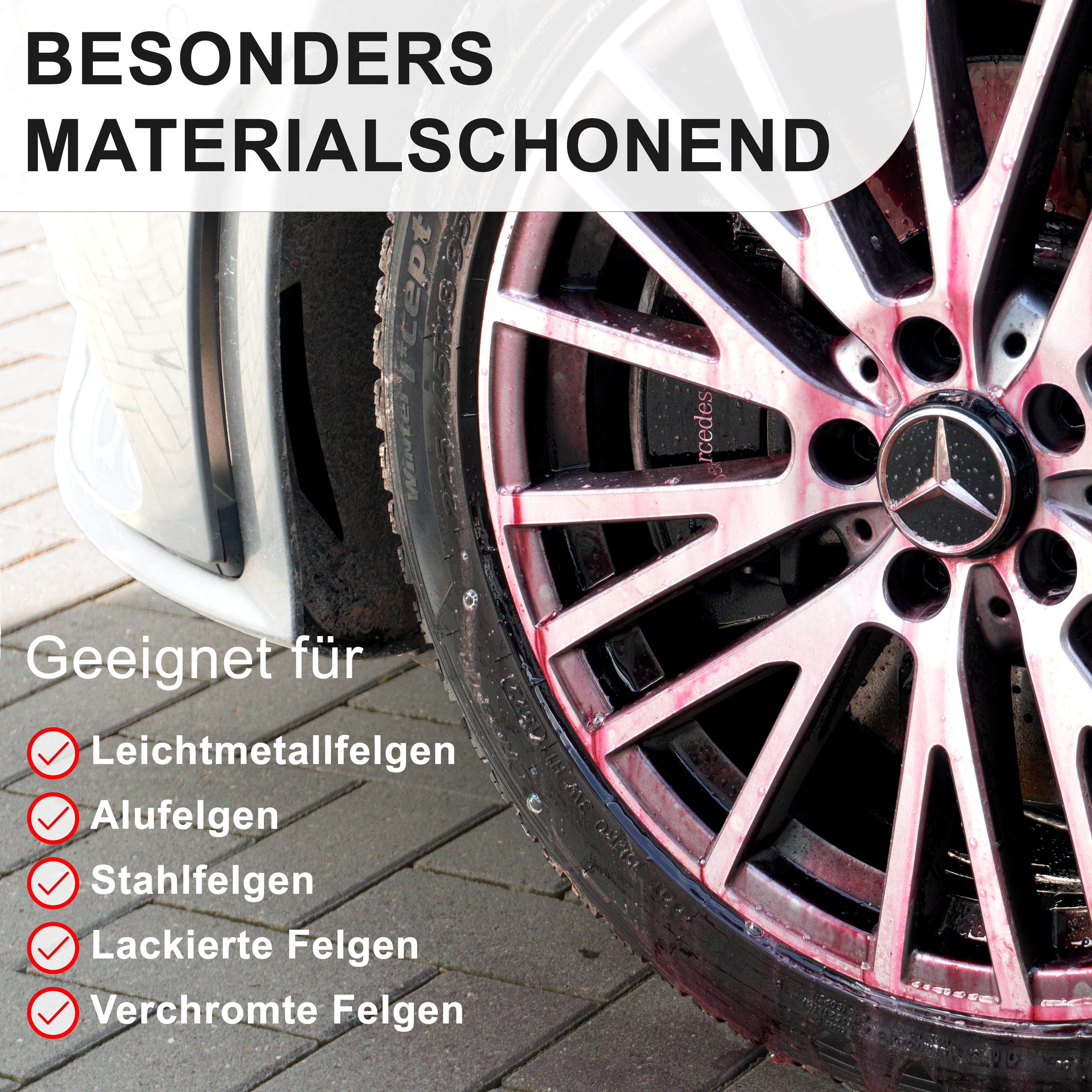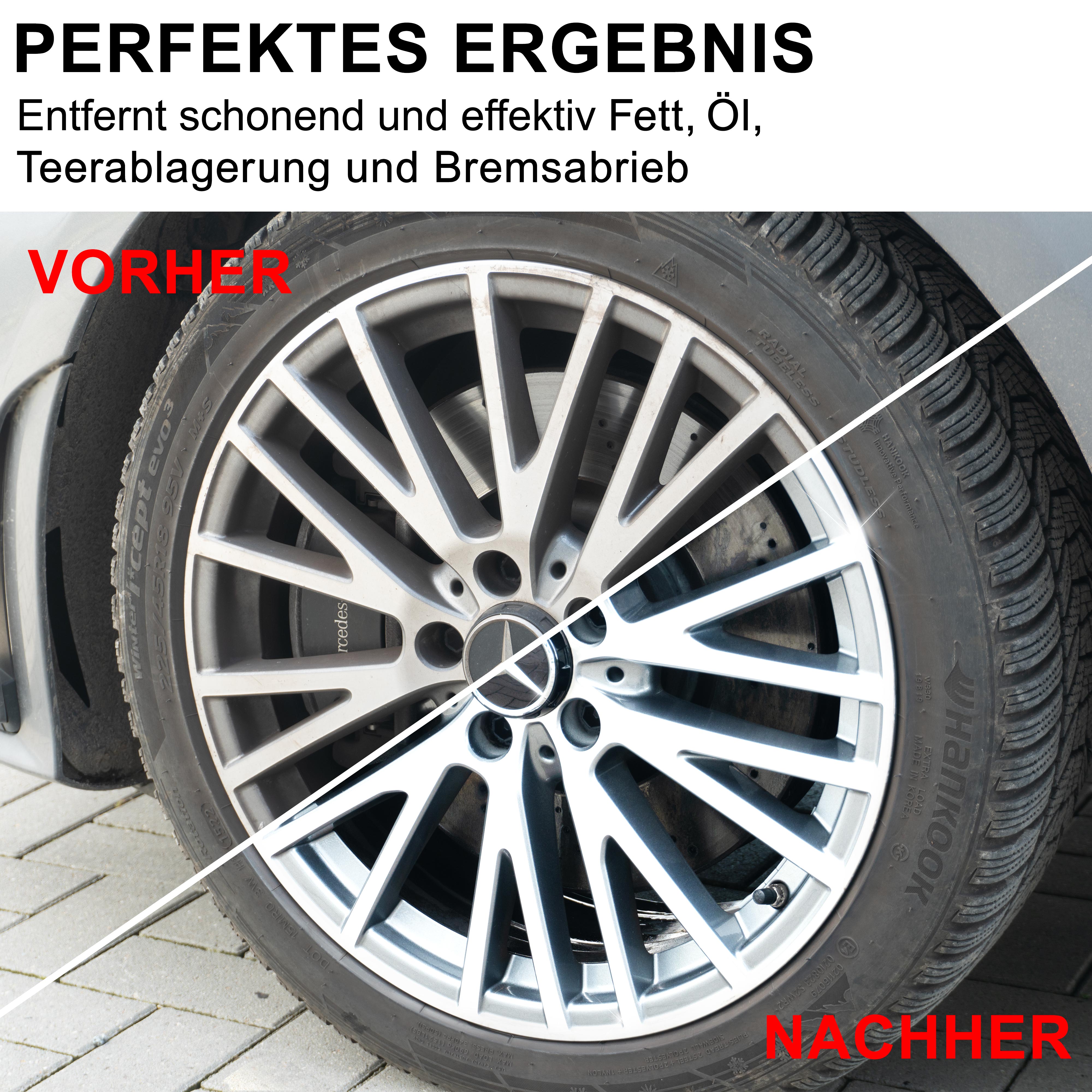 - Lackschonend & säurefrei: Speziell entwickelt, um Aluminium-, Chrom- und lackierte Felgen nicht anzugreifen oder zu beschädigen. Ohne Säure.